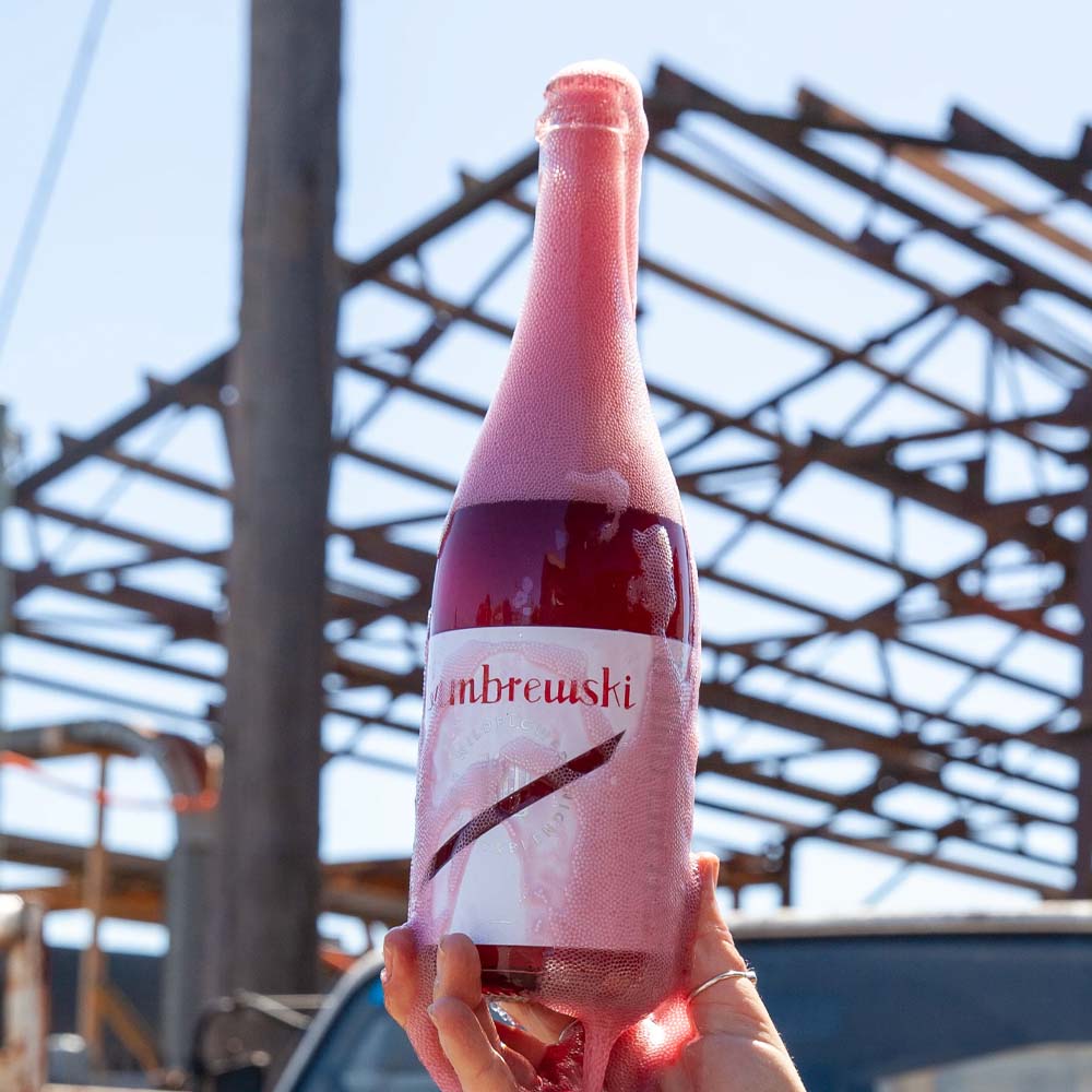 Made in collaboration with our good friend Tim Ward, this ale was made using lightly pressed Lambrusco Maestri skins from the 2022 harvest grown by Chalmers in Heathcote, VIC. During harvest, we made a quick trip up to the Hunter Valley to collect the skins the morning after Tim's late night pressing, brought them back to Marrickville and soaked them for six months on both fresh and aged ale brewed with regenerative organic grains wholly fermented by a diversity of yeasts and bacteria collected from native flowers in NSW. This extended maceration lends the beer both tannin and colour from this unique variety. A sparkling red (ale) fit for the Christmas table.